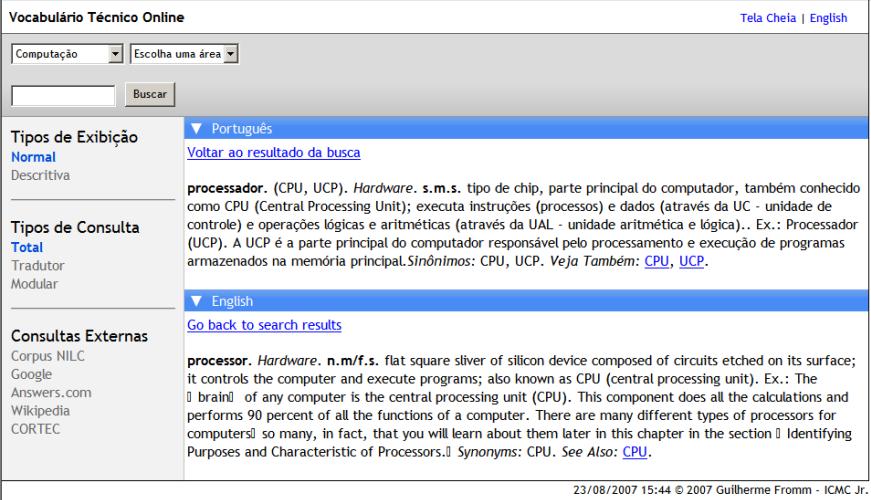 Além dos diversos tipos de consultas internas disponíveis no vocabulário, você também pode fazer consultas externas a sites diversos. Segue o resumo de cada um deles; basta clicar em cada um, esperar abrir a caixa de inserção, inserir o termo desejado e clicar <enter> no seu teclado: