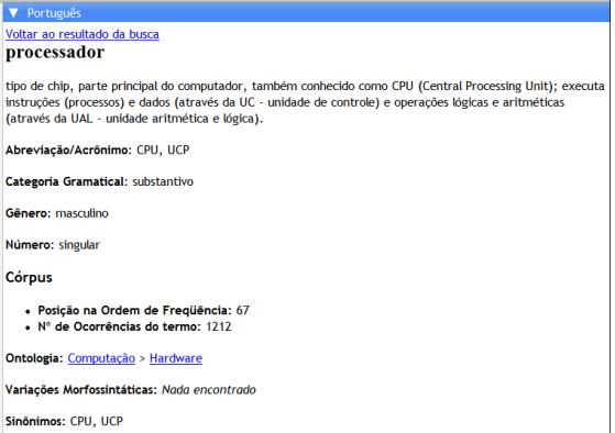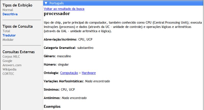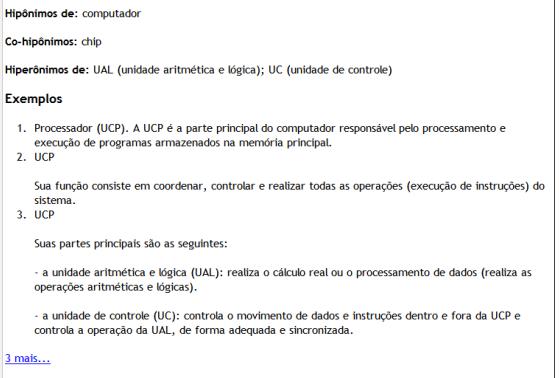 extenso, corpus, exemplos, informações enciclopédicas e remissiva.